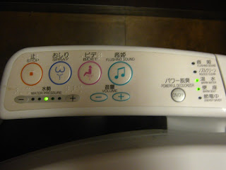 As famosas privadinhas do Japão. Quantos botoezinhos! Bidet saindo água, às vezes com direito a frente e trás, arzinho para secar, flushing sound (barulho de água corrente para disfarçar certos sons desagradáveis que podem ser constrangedores) com volume ajustável... E logo que você senta, automaticamente liga o som de água corrente por alguns segundos. E no frio, dá para esquentar o assento. :) E a marca da privada é a famosa Toto.